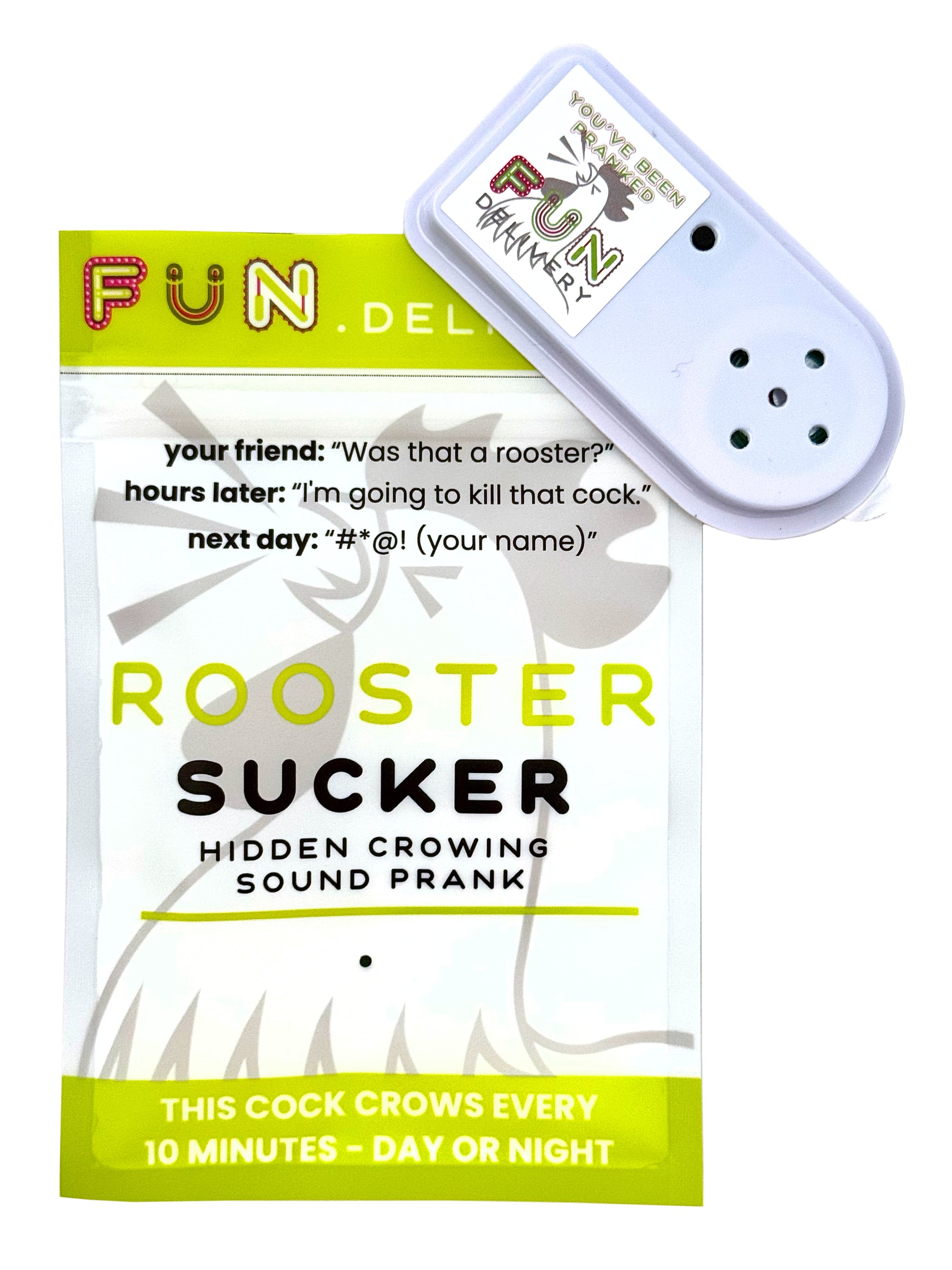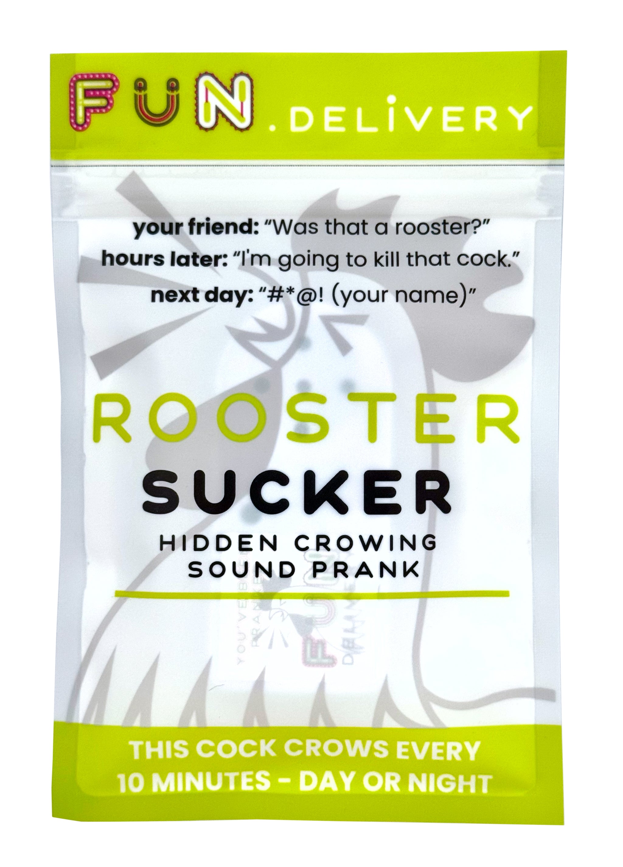 Rooster Sucker is suitable to prank friends, neighbors, or family, especially those you don't share living quarters with. Just activate the device and let your friend find it. Or move it around from time to time to really aggravate your parents. Or have it nearby and pretend you don't hear it. What will YOU do? Upload your shenanigans and tag @FUNdeliveryUS.